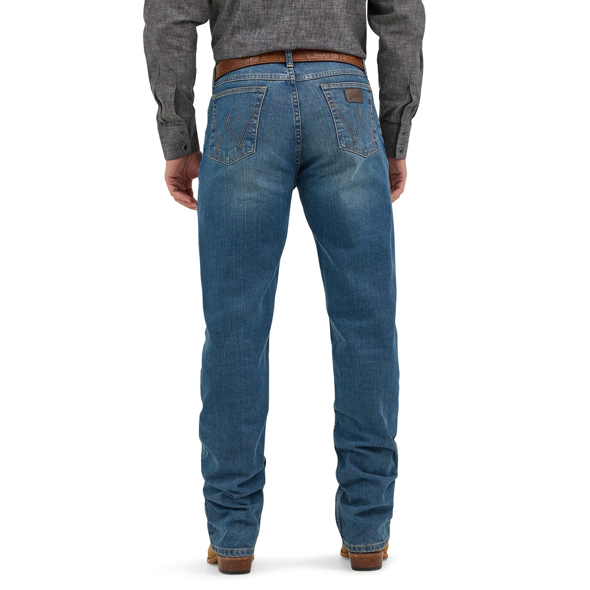 Inspired by country legend Cody Johnson, the Wrangler® X Cody Johnson Relaxed Fit Jeans deliver rugged style with laid-back comfort. Featuring a medium Blue Stone wash, these jeans sit just below the waist and offer a relaxed seat and thigh for easy movement. The straight leg stacks perfectly over boots, while signature details like the embroidered back pockets, logo patch, and branded button add authentic Western flair.